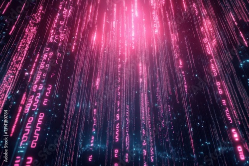 Wall mural digital technology backdrop for presentation with illuminated pink code rain, abstract cyber space f - Wall murals Wall mural digital technology backdrop for presentation with illuminated pink code rain, abstract cyber space f - Wall murals