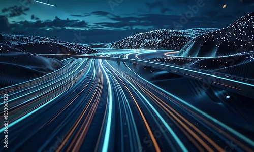 The watermark will not be included on Wall mural.: Digital technology background with light trails on road, data transfer and connection concept
