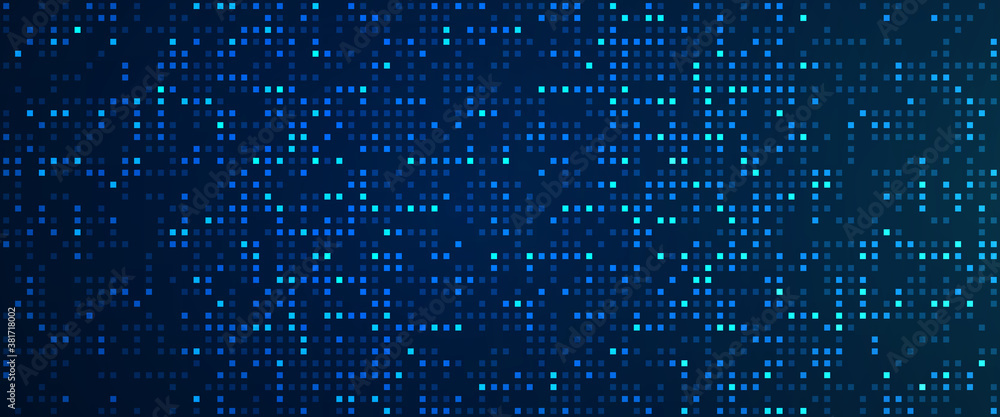 Wall mural digital technology background. digital data square blue pattern pixel background