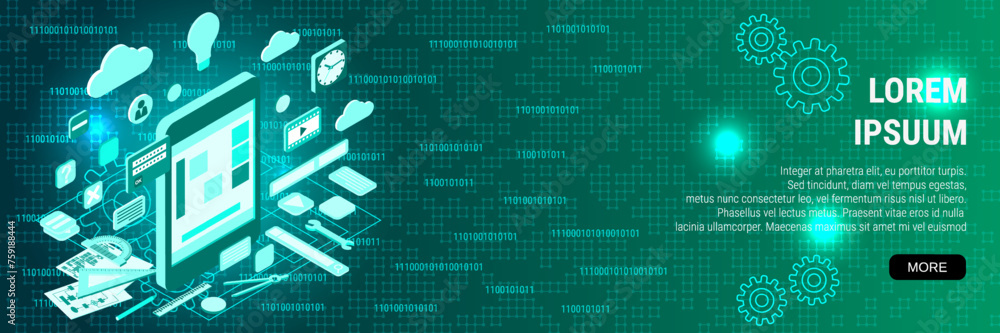 Digital technology banner vector design template - mobile application development, gui construction fWall mural