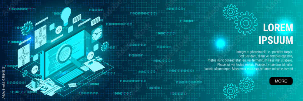Wall mural digital technology banner vector design template. program coding, application development, software  - Wall murals Wall mural digital technology banner vector design template. program coding, application development, software - Wall murals