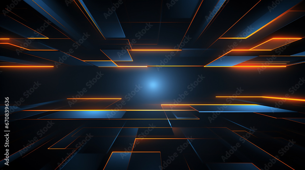 Wall mural digital technology blue gold geometric curve abstract square and orange glow light. modern digital a