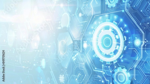 Wall mural digital technology concept with circuit patterns and glowing lights on a blue backdrop, symbolizing