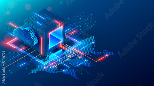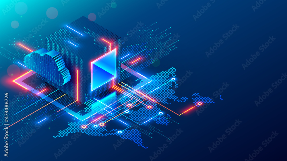 Wall mural : Digital technology conceptual banner - cube or block consists matrix of digits - block chain of abstra