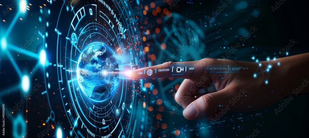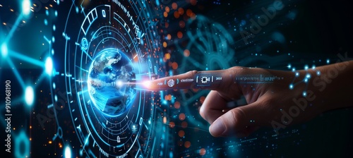 Wall mural digital technology illustration of global network concept with icons and globe internet network conn - Wall murals Wall mural digital technology illustration of global network concept with icons and globe internet network conn - Wall murals