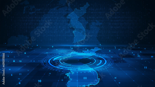 Wall mural : Digital technology security numbers circle background on korea map hud