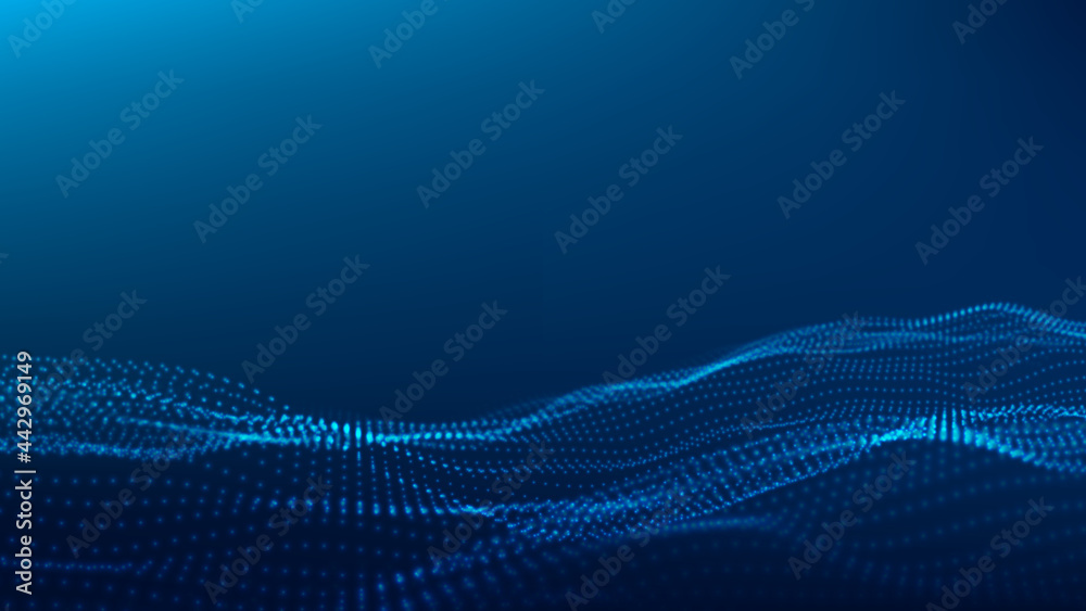 Wall mural digital technology wave. abstract background with dots moving in space. futuristic modern dynamic wa - Wall murals Wall mural digital technology wave. abstract background with dots moving in space. futuristic modern dynamic wa - Wall murals