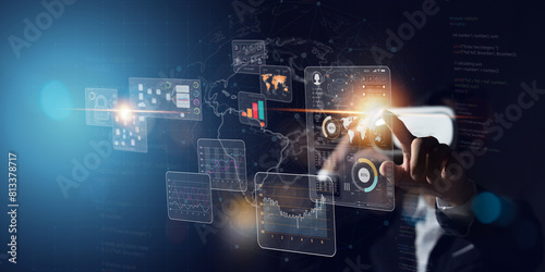 Wall mural digital transformation concepts, systems engineering, binary code, programming businessman using vr  - Wall murals Wall mural digital transformation concepts, systems engineering, binary code, programming businessman using vr - Wall murals
