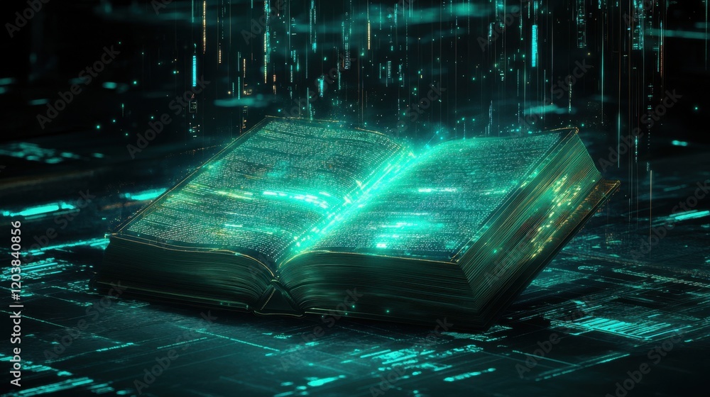 Wall mural digital transformation of knowledge through a virtual open book - Wall murals Wall mural digital transformation of knowledge through a virtual open book - Wall murals