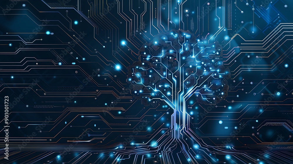 Wall mural : Digital tree formed by intricate circuitry, symbolizing the growth of knowledge and technology -