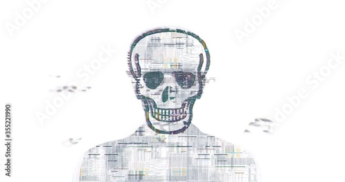 Wall mural digital virus skull. upper body view of a virus infected person consisting of a glitch computer code