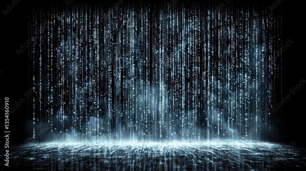 The watermark will not be included on Wall mural.: Digital waterfall of cascading letters in abstract visualization