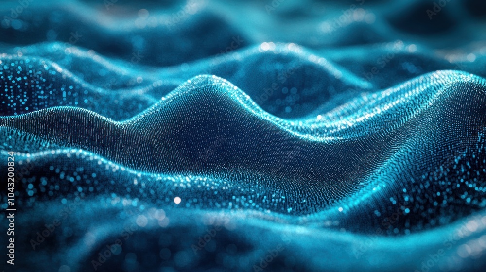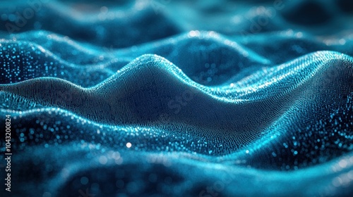 Digital wave of tiny pixelated squares in shades of blue and teal, simulating data flowWall mural
