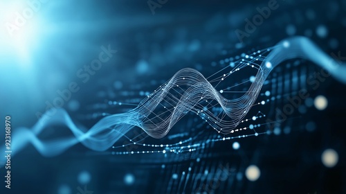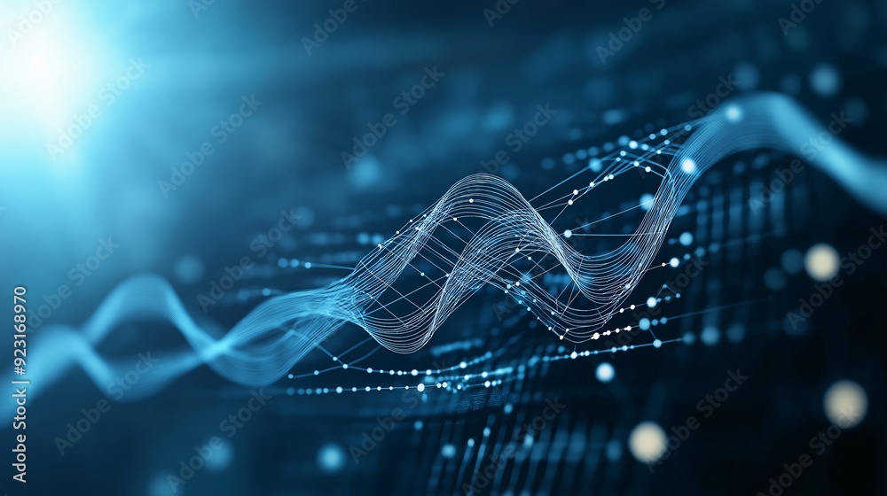 Wall mural digital waveform in cyberspace: an ethereal wave of data flows through a network of interconnected n - Wall murals Wall mural digital waveform in cyberspace: an ethereal wave of data flows through a network of interconnected n - Wall murals