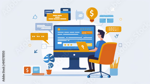 Wall mural digital workspace with a user engaging in online tasks - Wall murals Wall mural digital workspace with a user engaging in online tasks - Wall murals