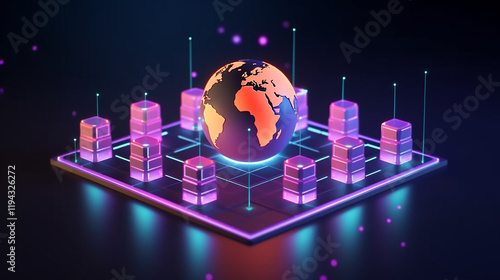 Wall mural : Digital world globe, concept of global network and connectivity on high speed data transfer and cybe
