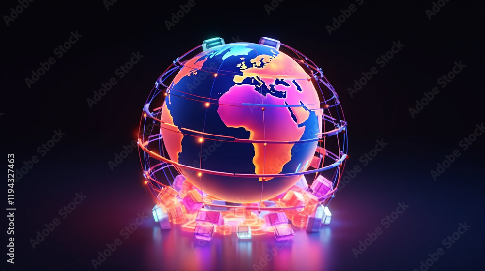 The watermark will not be included on Wall mural.: Digital world globe representing global network and connectivity on earth, featuring high-speed data