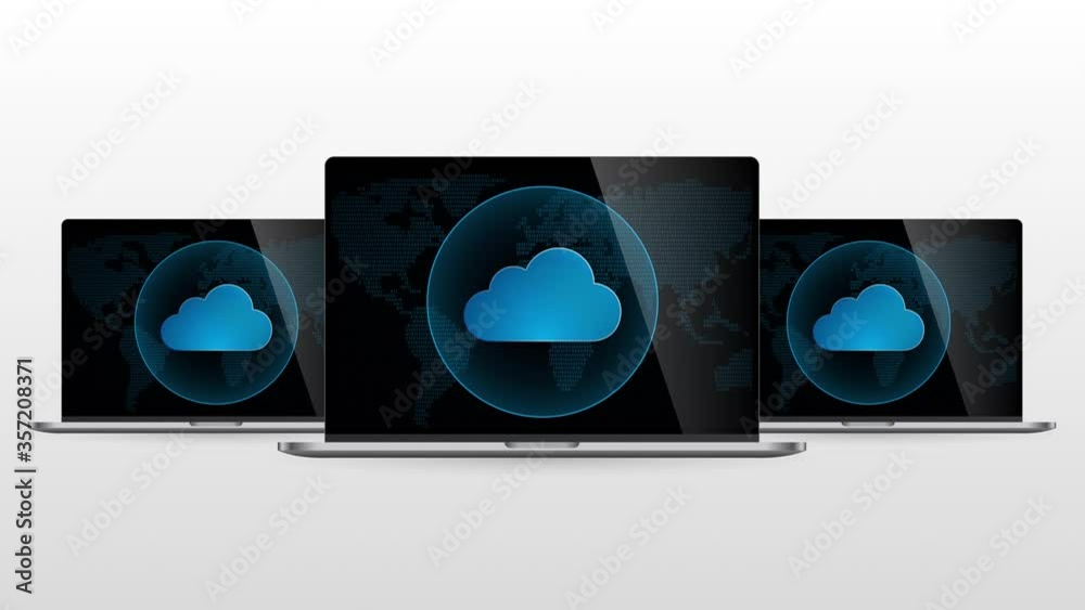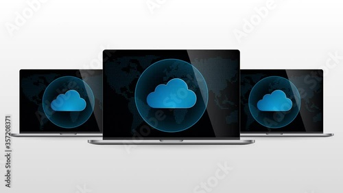 Wall mural digital world laptop device with cloud computing. realistic laptop monitor with cloud symbol in scre - Wall murals Wall mural digital world laptop device with cloud computing. realistic laptop monitor with cloud symbol in scre - Wall murals