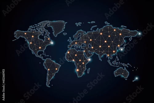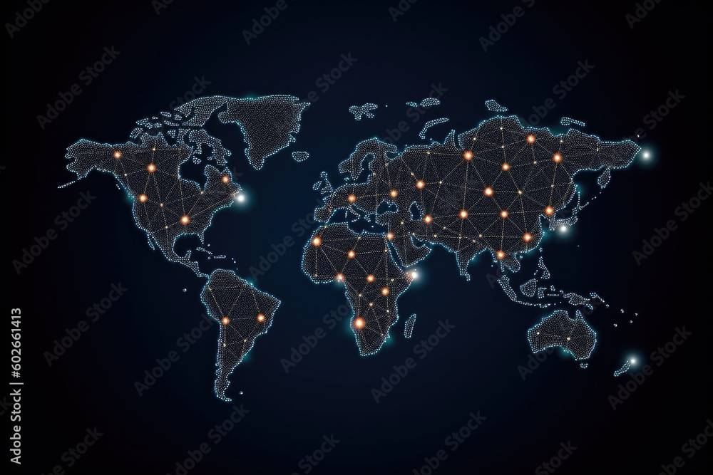 Wall mural digital world map with dot connections. global communication and network. created with generative ai - Wall murals Wall mural digital world map with dot connections. global communication and network. created with generative ai - Wall murals