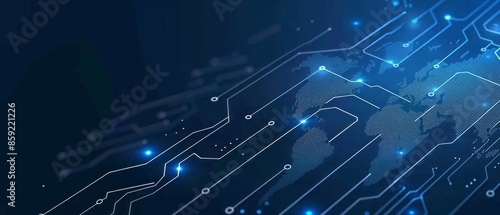 The watermark will not be included on Wall mural.: Digital world map with illuminated circuitry