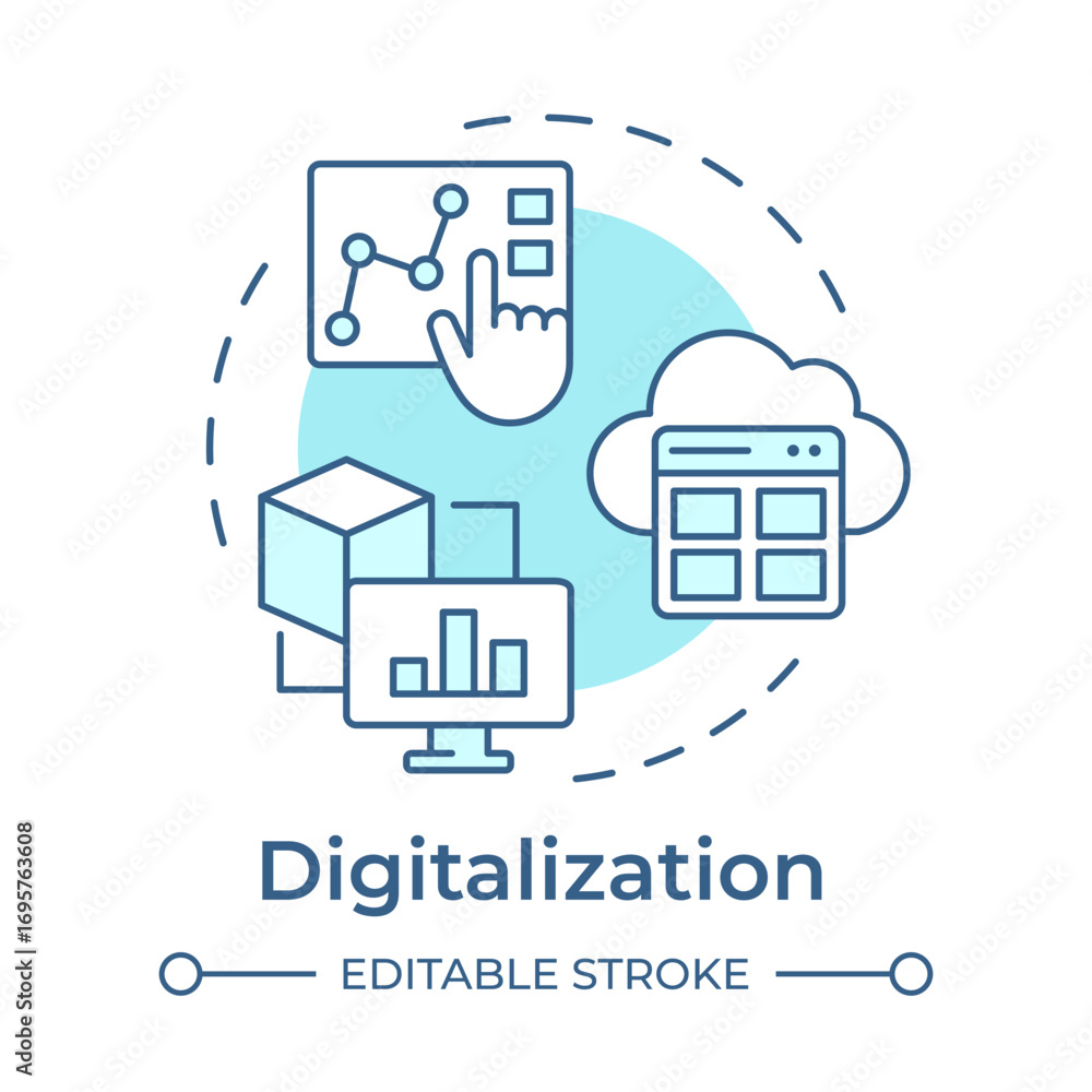 Wall mural digitalization soft blue concept icon. data analysis, statistics. cloud technology. round shape line