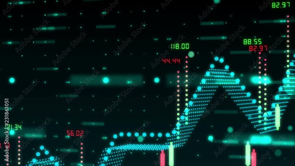 Wall mural digitally animated background with 3d financial bar graph made of holographic dots and figures illus