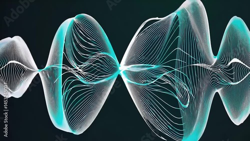 Wall mural digitally rendered soundwave animation displaying smooth flowing teal green curves representing abst - Wall murals Wall mural digitally rendered soundwave animation displaying smooth flowing teal green curves representing abst - Wall murals