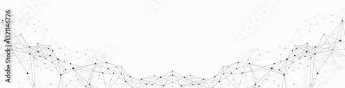 Wall mural : Digits abstract background with connected line and dots, wave flow - digital neural networks - network