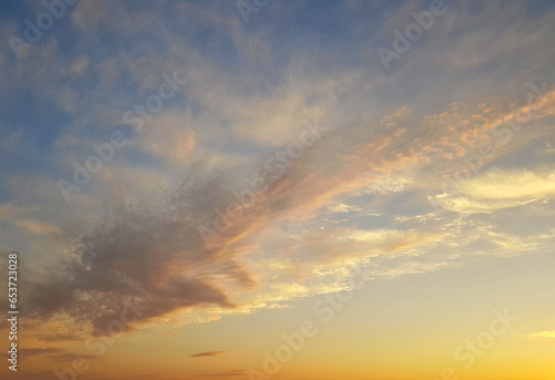 Wall mural dinamic colorful sunset sky with cloud. summer gold cloudy skyline