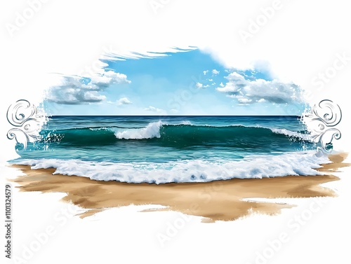 The watermark will not be included on Wall mural.: Discover the tranquility of ocean waves gently lapping on a serene beach