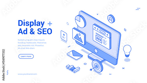 Display ad seo internet digital marketing outline isometric web banner design template vector illustWall mural