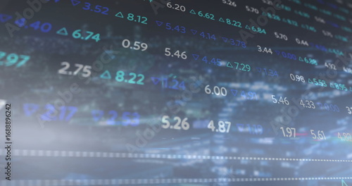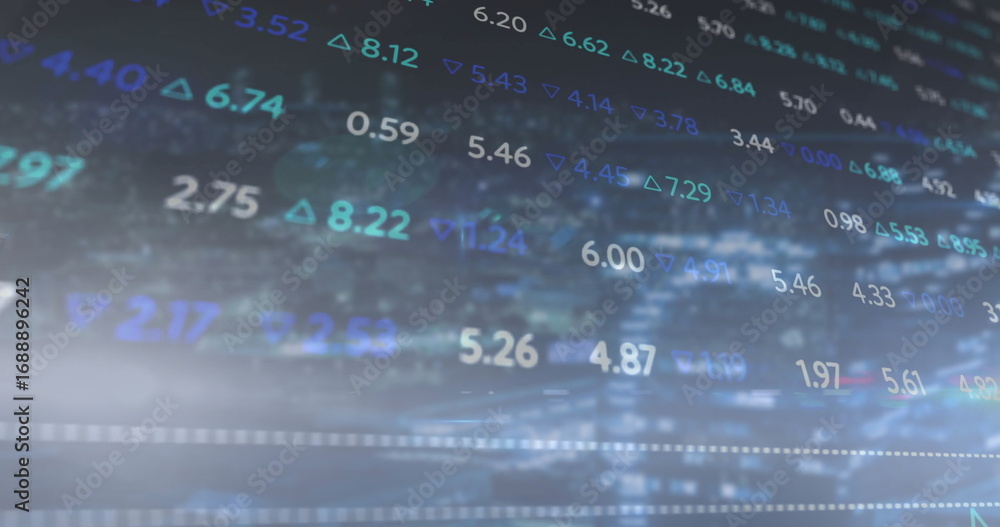 Wall mural : Displaying data interface showing numeric values and arrows in blue background, market metrics