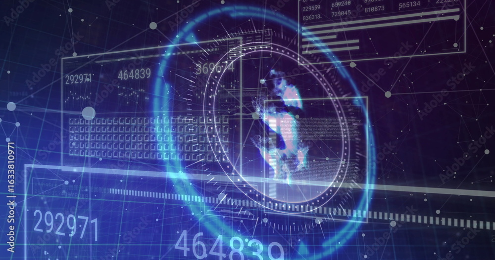 Wall mural : Displaying holographic globe display rotating within digital interface, with numeric data and grids