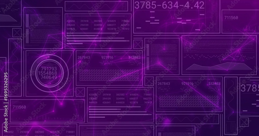 Wall mural displaying purple translucent panels in virtual interface, showing code blocks, data charts - Wall murals Wall mural displaying purple translucent panels in virtual interface, showing code blocks, data charts - Wall murals