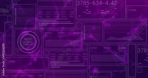 Wall mural : Displaying purple translucent panels in virtual interface, showing code blocks, data charts