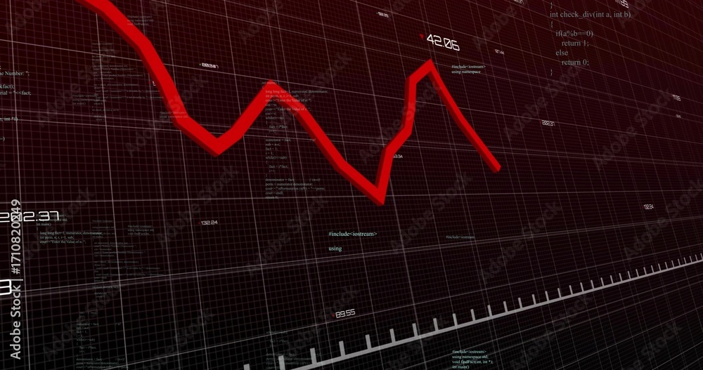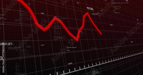 Wall mural : Displaying red jagged trend line on dark grid, with numeric labels, tick marks, code snippets