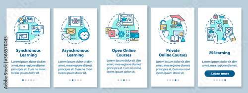 Distance learning types onboarding mobile app page screen with concepts - open online courses - remoteWall mural