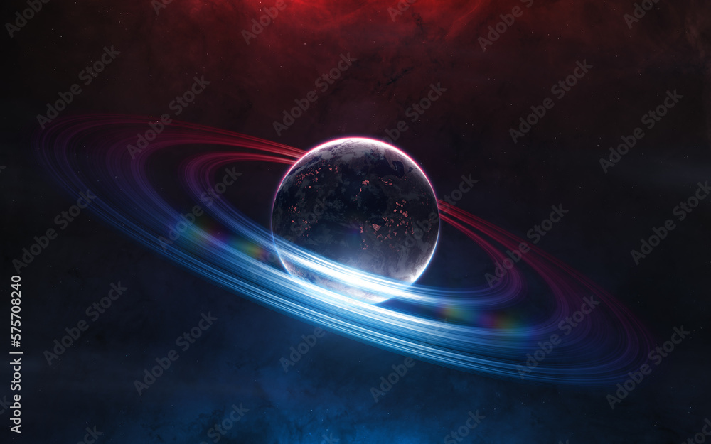 Wall mural distant inhabited deep space planet in red and blue starlight. science fiction. elements of this ima - Wall murals Wall mural distant inhabited deep space planet in red and blue starlight. science fiction. elements of this ima - Wall murals