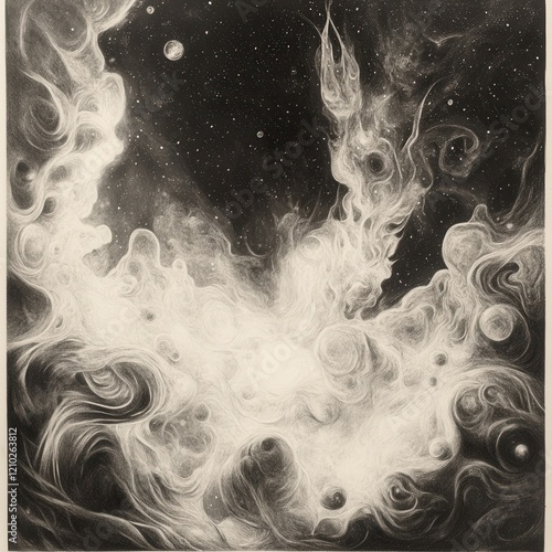 The watermark will not be included on Wall mural.: Distant nebula surrounded by swirling gases and cosmic elements in the depths of space