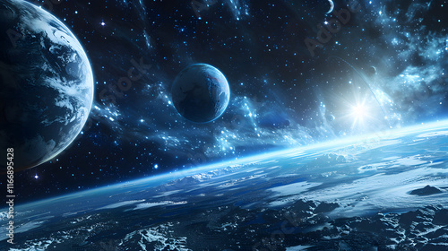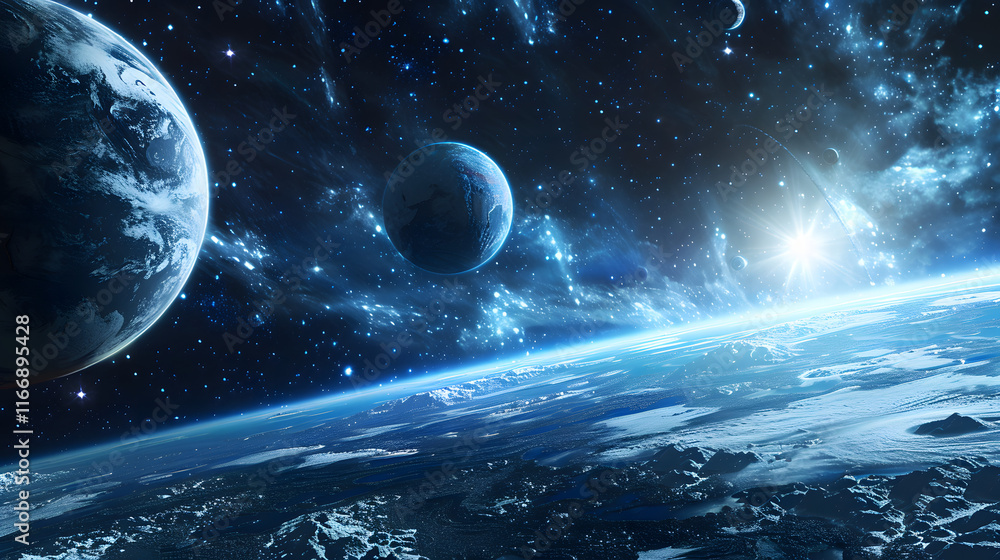 Wall mural : Distant planet system in space with exoplanets 3d rendering