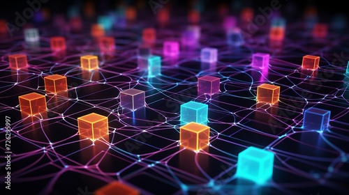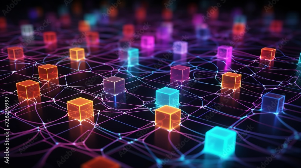Wall mural distributed ledger technology: blockchain network concept with computer connection on colored backgr - Wall murals Wall mural distributed ledger technology: blockchain network concept with computer connection on colored backgr - Wall murals