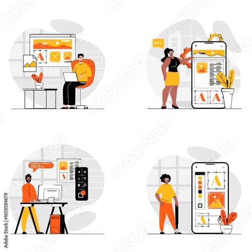 Wall mural : Diverse team of designers collaborating on a digital product, focusing on user interface and user ex