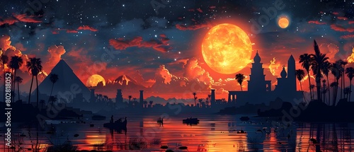 The watermark will not be included on Wall mural.: Divine intervention in the creation of the egyptian universe: a mythological silhouette
