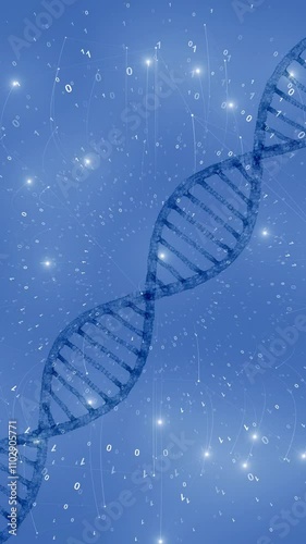 Dna chain rotation on bright blue binary data vertical background - Wall mural