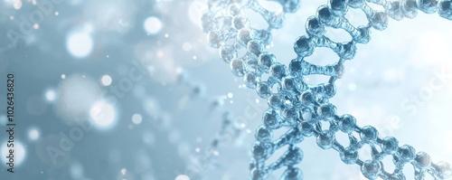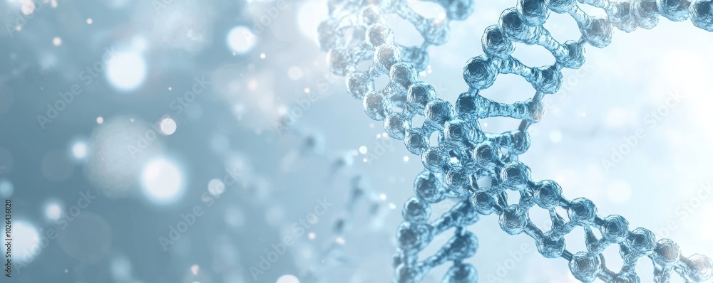 Wall mural dna double helix structure on a soft blue gradient background with floating molecular bubbles - Wall murals Wall mural dna double helix structure on a soft blue gradient background with floating molecular bubbles - Wall murals