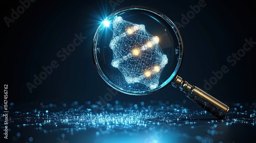 Wall mural : Dna sequencing and a magnifier are used to illustrate the genetic engineering concept - dna molecules