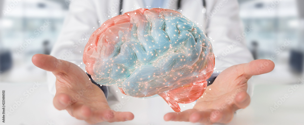 Wall mural doctor using digital brain scan hologram 3d rendering - Wall murals Wall mural doctor using digital brain scan hologram 3d rendering - Wall murals