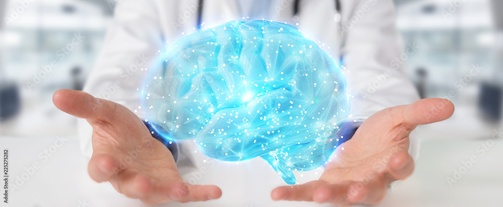 Wall mural doctor using digital brain scan hologram 3d rendering - Wall murals Wall mural doctor using digital brain scan hologram 3d rendering - Wall murals