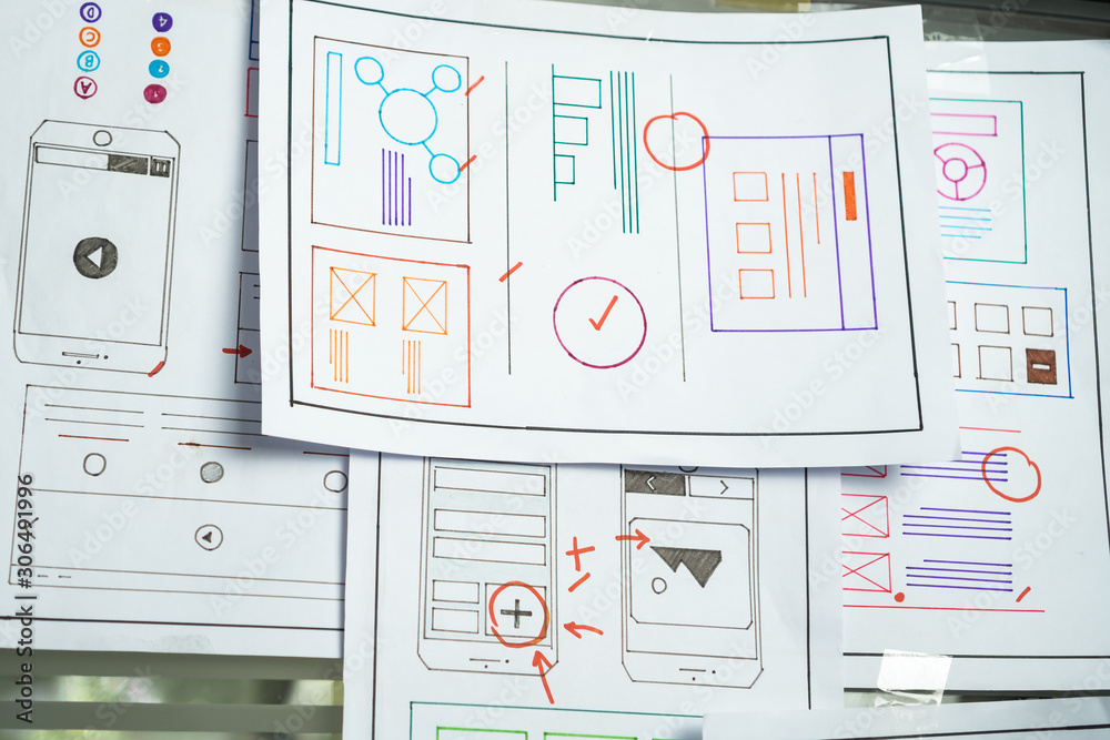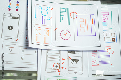 Wall mural : Document design software ux architect template developer project mobile app or application on wall p