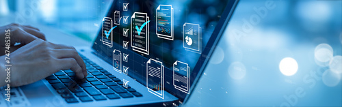 Wall mural document management concept, check electronic documents on digital documents on virtual screen docum - Wall murals Wall mural document management concept, check electronic documents on digital documents on virtual screen docum - Wall murals